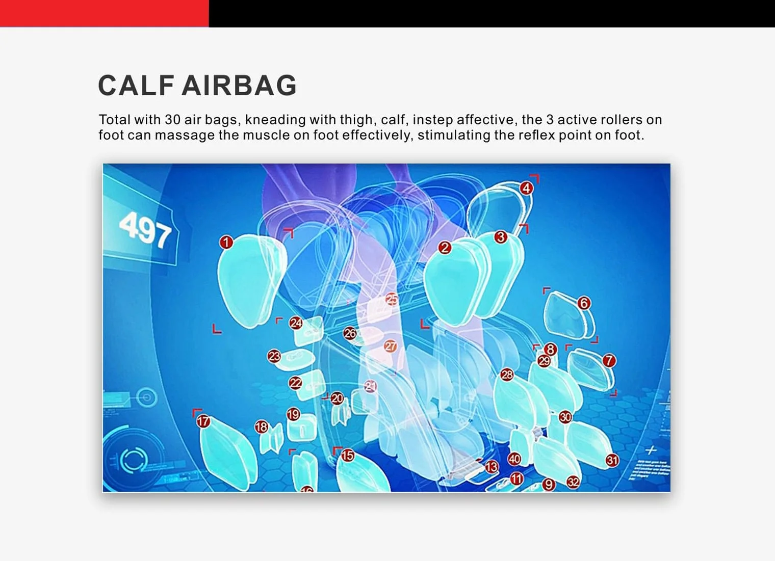 - 30 built-in airbags with thigh kneading effect for an enhanced therapeutic effect