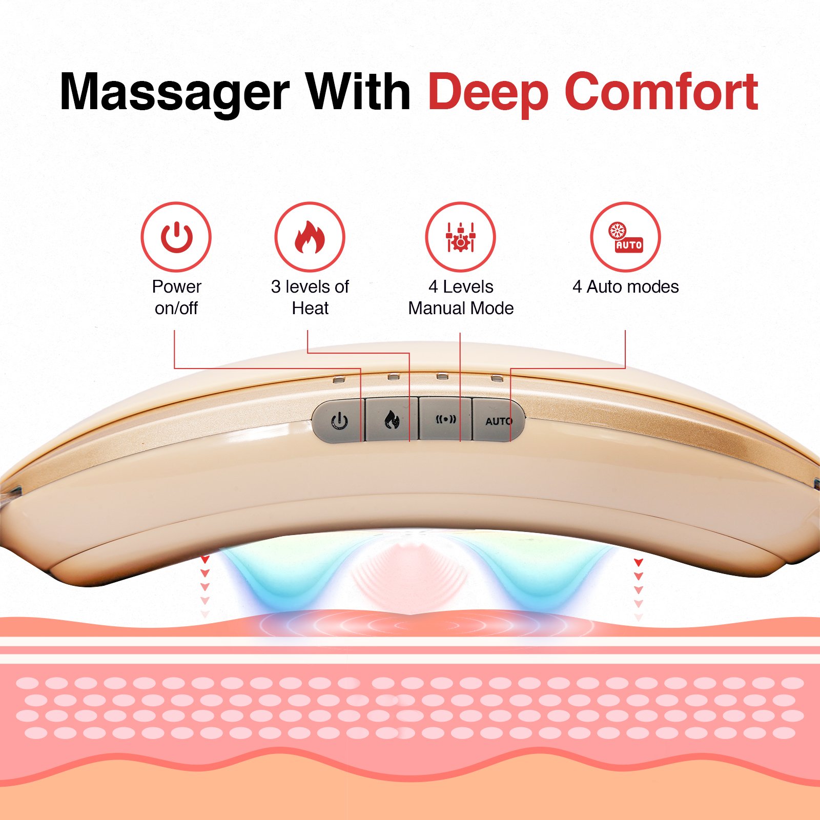 3 levels of gentle warmth help relax the core and improve overall comfort during use.
