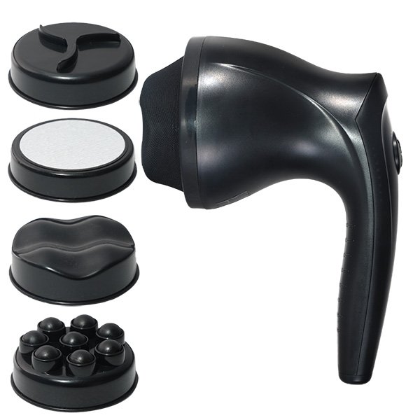 The Handheld SlimSmart Body Massager helps relax your muscles and provides pain relief. It features 4 interchangeable massage heads and adjustable speed settings for a customized experience.