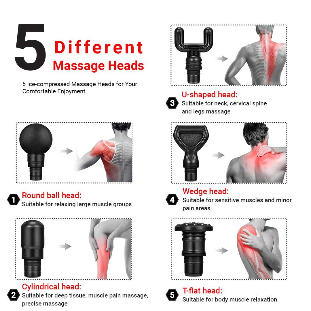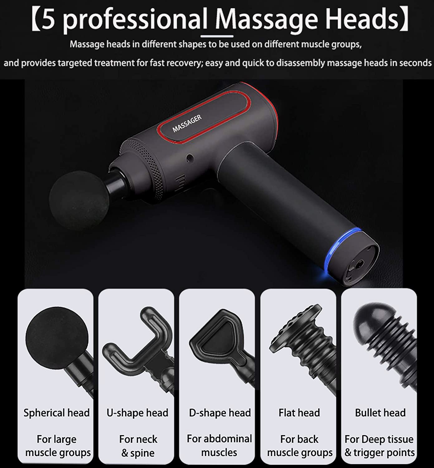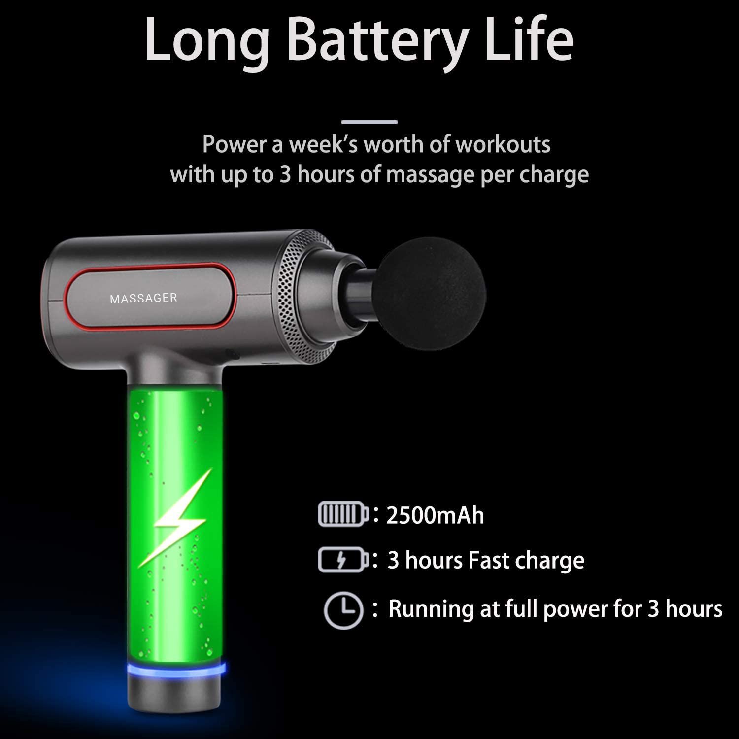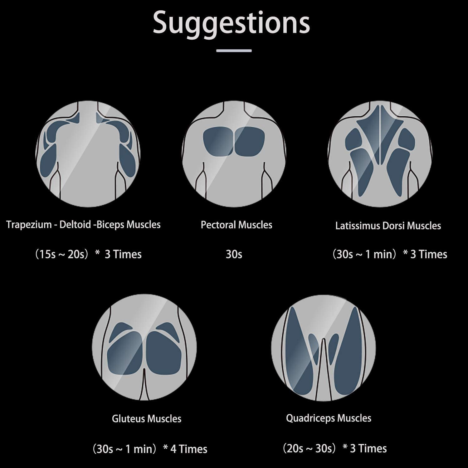 5 Speed Levels – Equipped with five different speed levels, can be switched easily to experience massage benefits. The low-speed level is perfect for warming up muscles and gentle pain relief while the high-speed level will deep tissue relief. Perfect for finishing up after a tough workout session! The highest setting will reach up to 2500 RPM and will remain quiet.