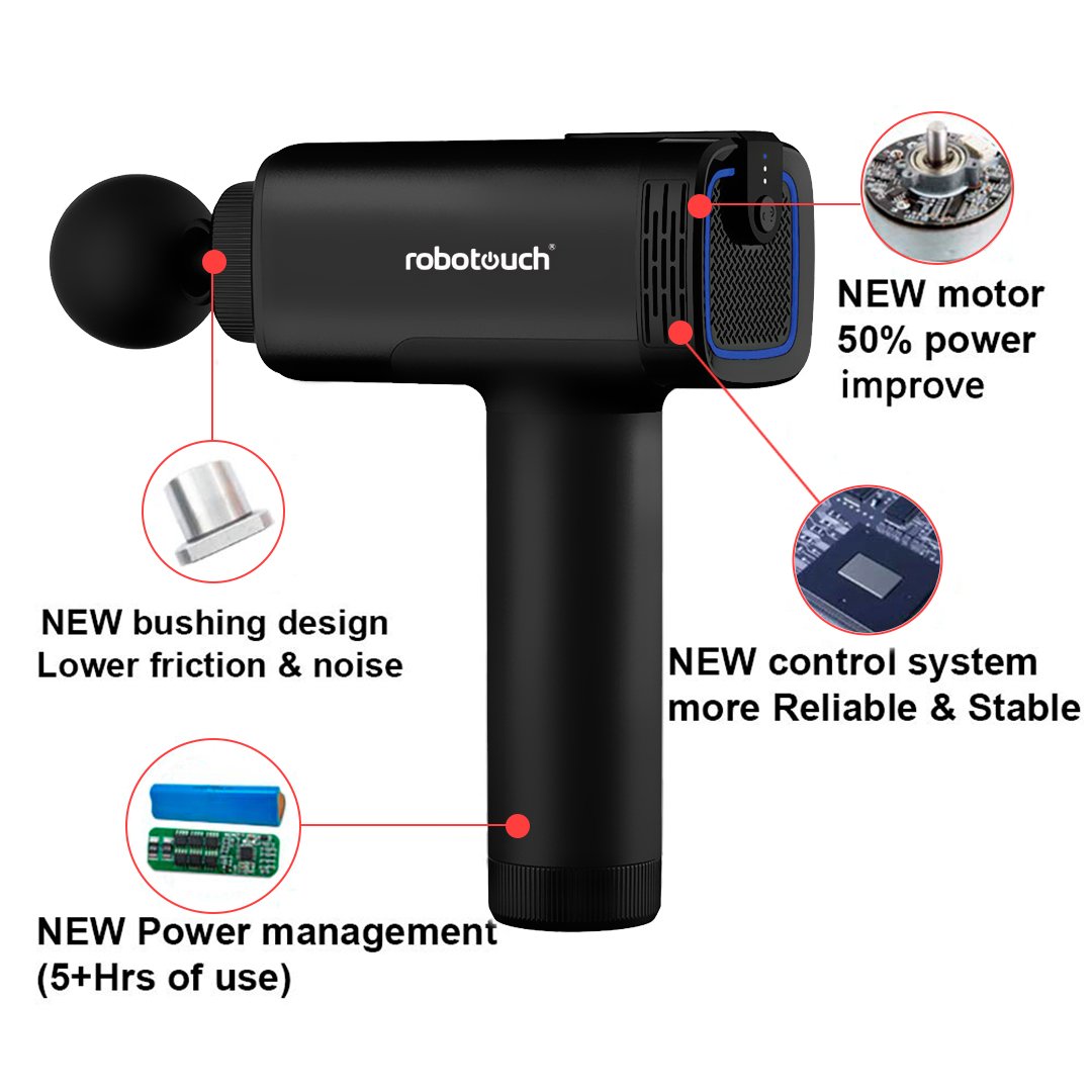 TorqueL Pro Massage Gun by RoboTouch is a wireless, state-of-the-art massage device that helps to reduce muscle soreness and tension, promote blood circulation, optimize mobility and improve the general condition of the body ‘s musculoskeletal system.