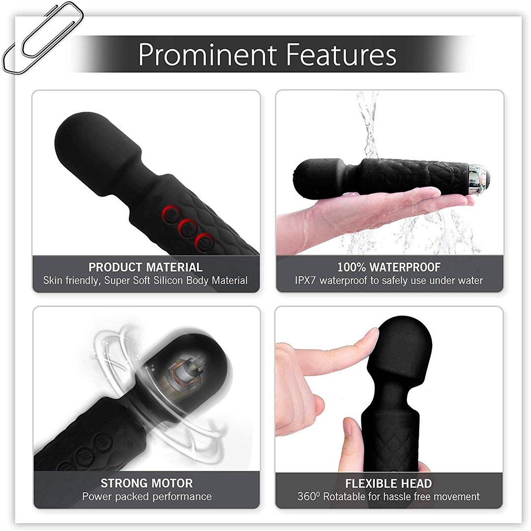 Completely waterproof design and easy to clean. Water-resistant design allows the electric massager to be used in the bath or shower, it is also really easy to clean.